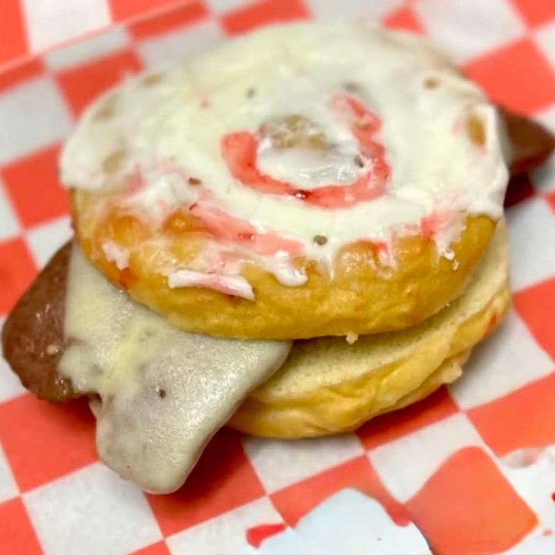 All beef hot dog served in a Jupiter Donuts and coffee glazed donut with melted swiss cheese. While supplies last.